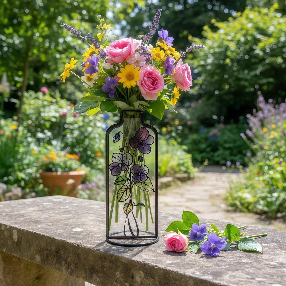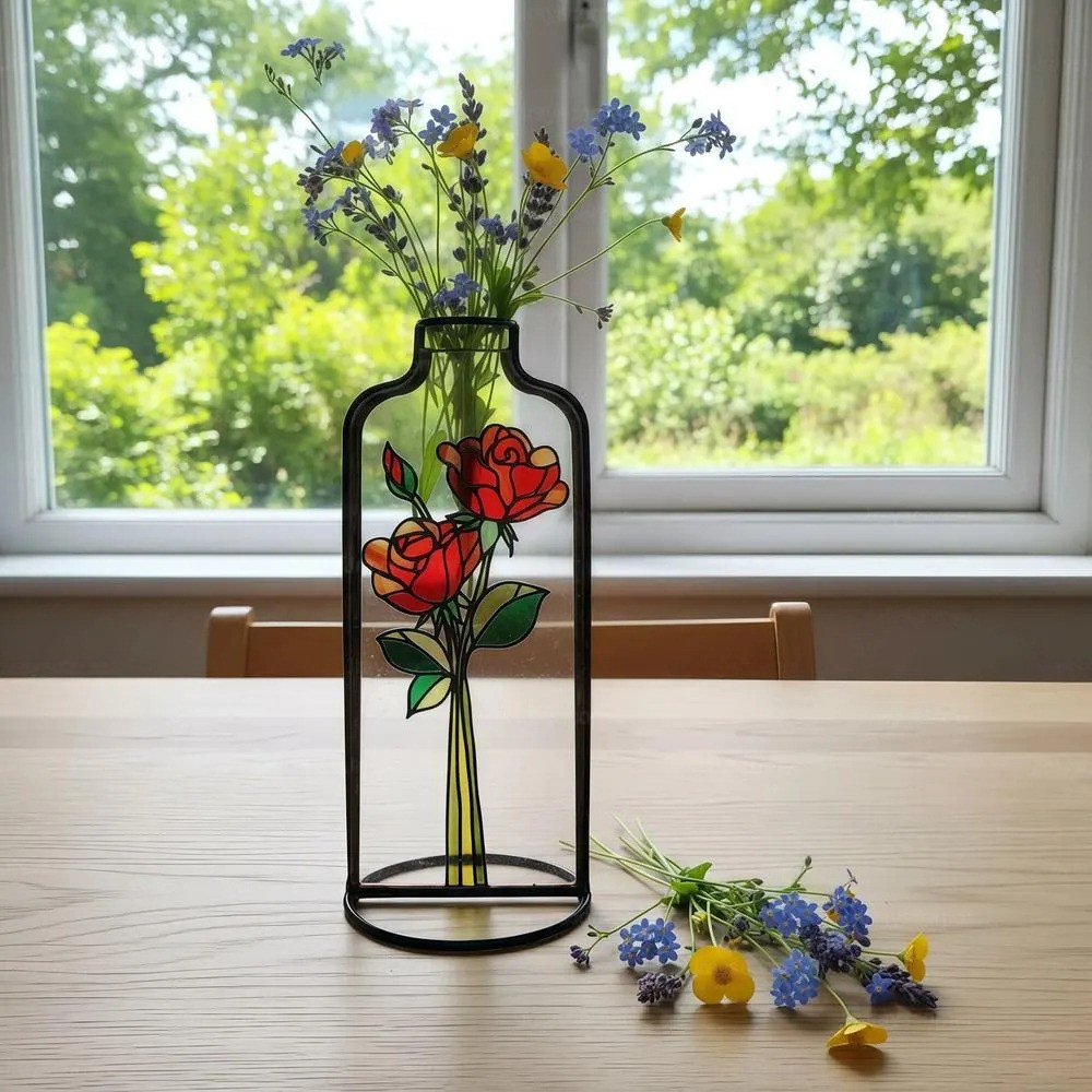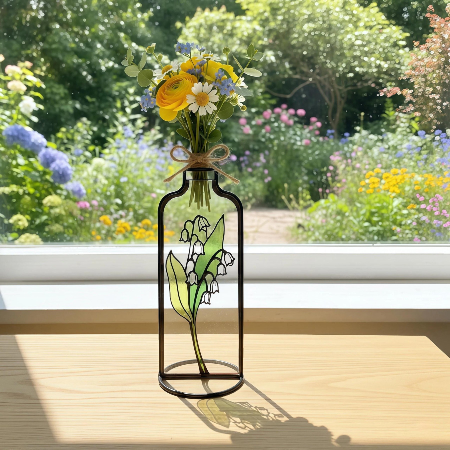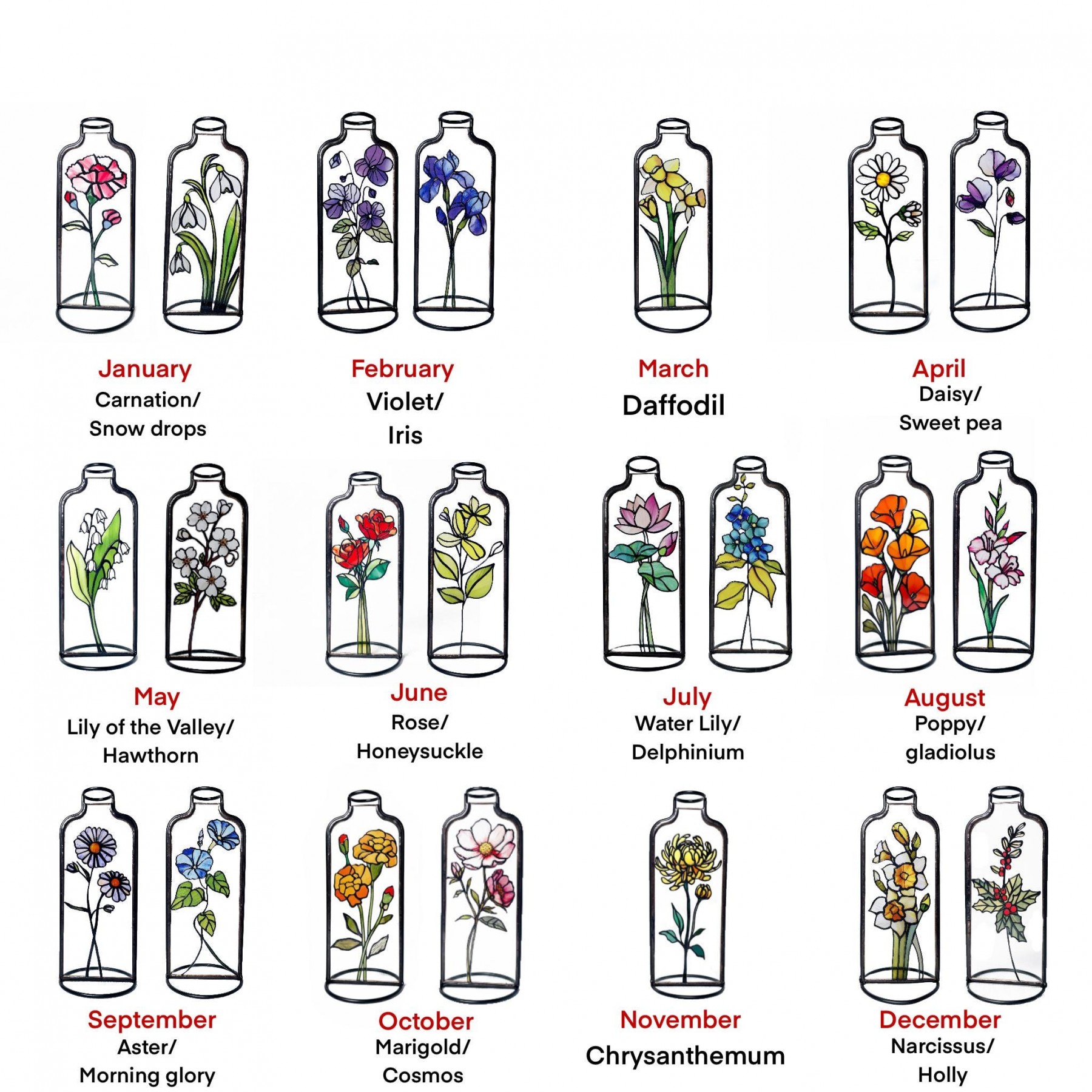 Custom Birth Flower Stained Glass Vase Mother's Day Gift
