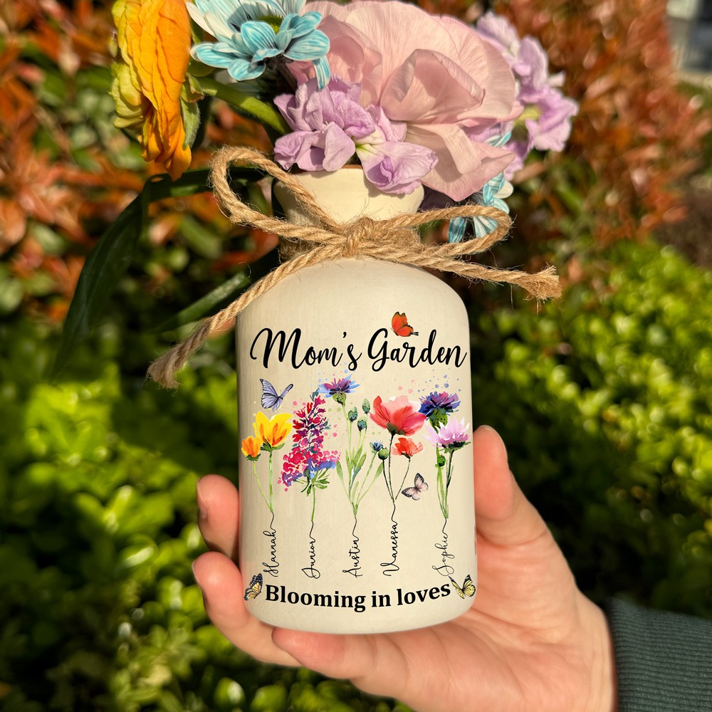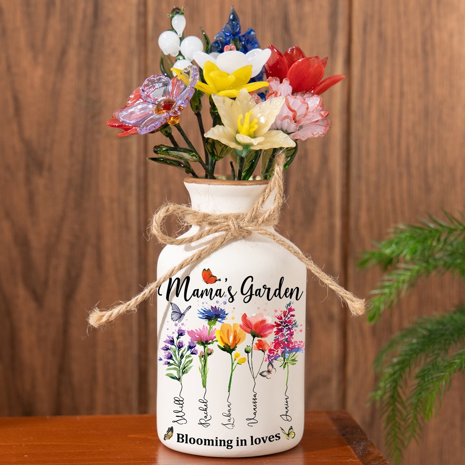 Custom Family Garden Birth Flower Vase With Grandchildren Name For Mother's Day Gift