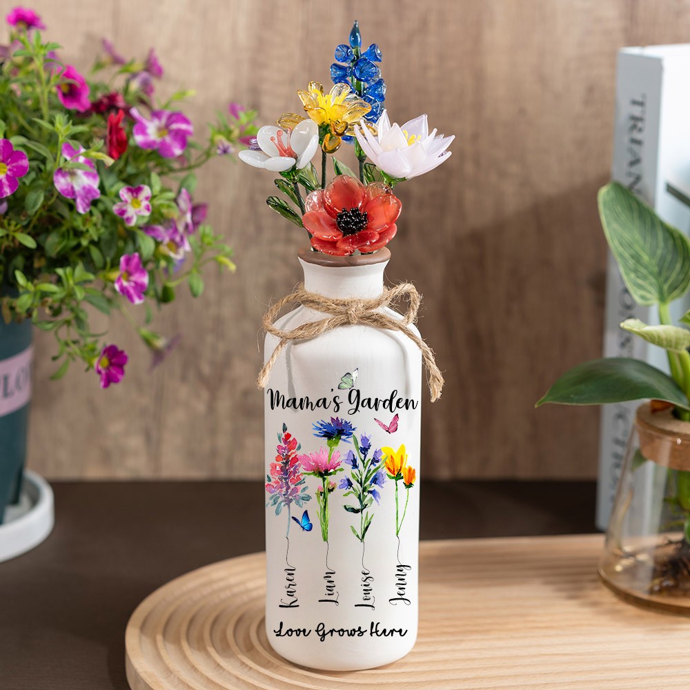 Custom Family Garden Birth Flower Vase With Grandchildren Name For Mother's Day Gift