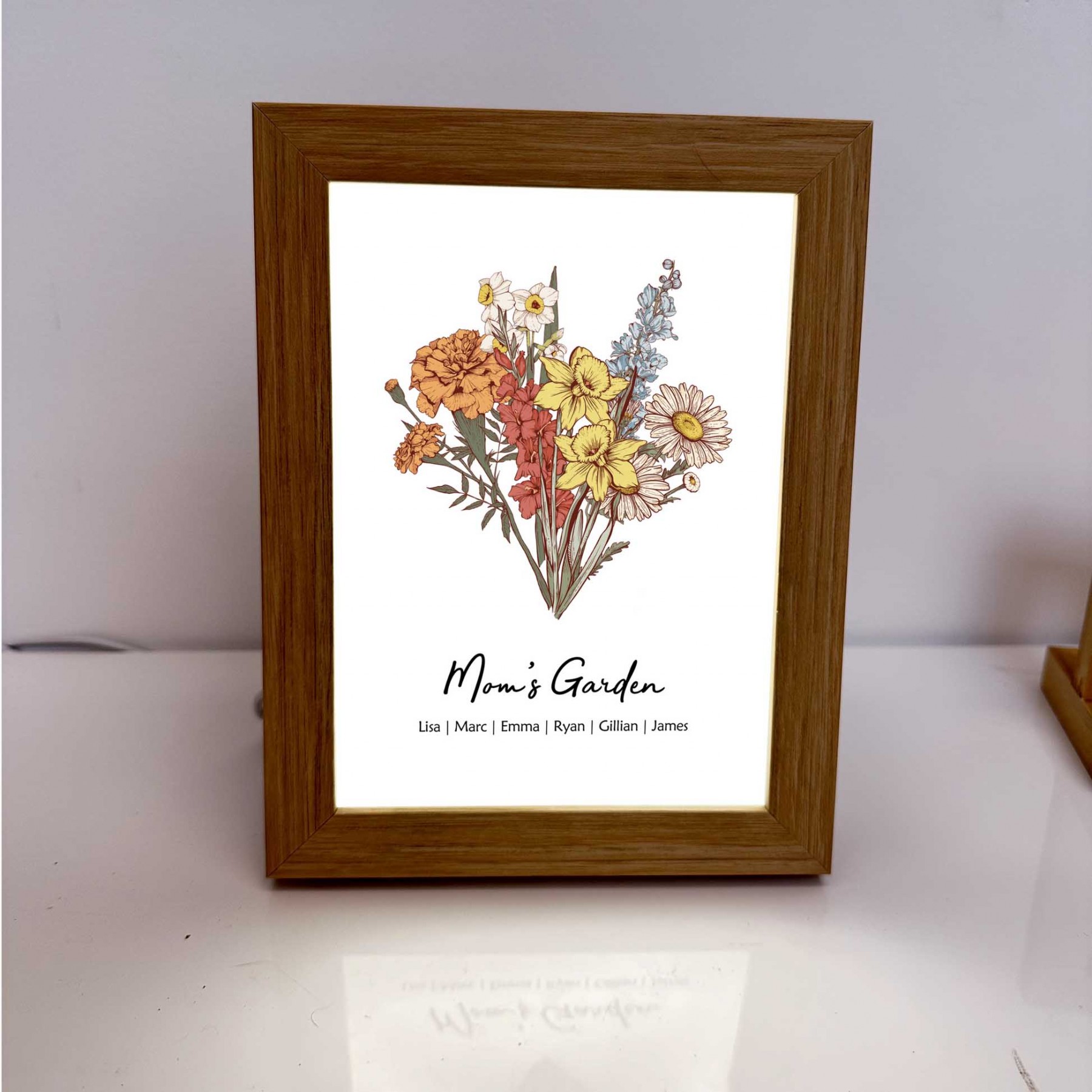Personalized LED Mom's Garden Sign With Kids Names and Birth Flowers For Mother's Day Gifts
