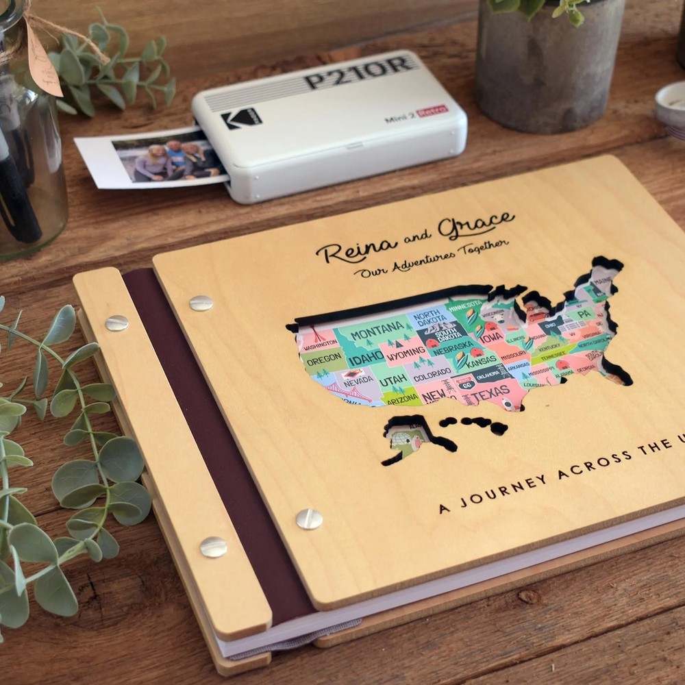 Personalized Wooden Travel Map Adventure Book Scrapbook Couples Travel Album Anniversary Gift Valentines Gift Christmas Gift